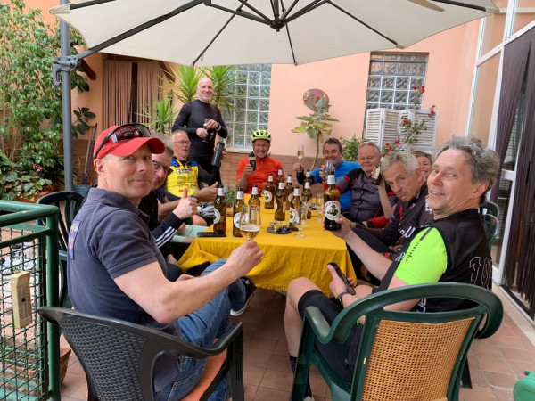 På kvällen äter vi en fyrarätters middag och kanske avslutar man sedan kvällen med en grappa eller Sambuca på en av barerna innan man laddar upp batterierna inför nästa dags cykling.